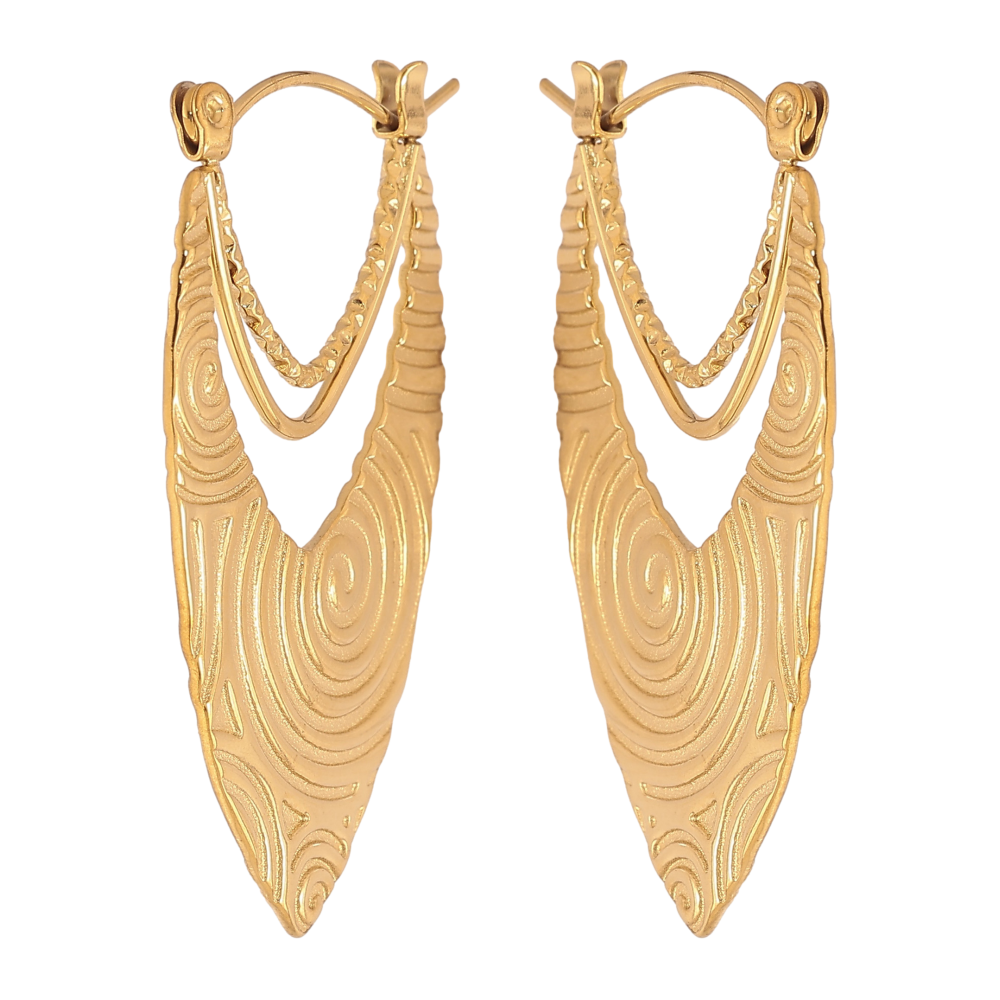 Сережки Xuping TTM Stainless Steel колір 14К замок-шпилька "Декоративний візерунок"