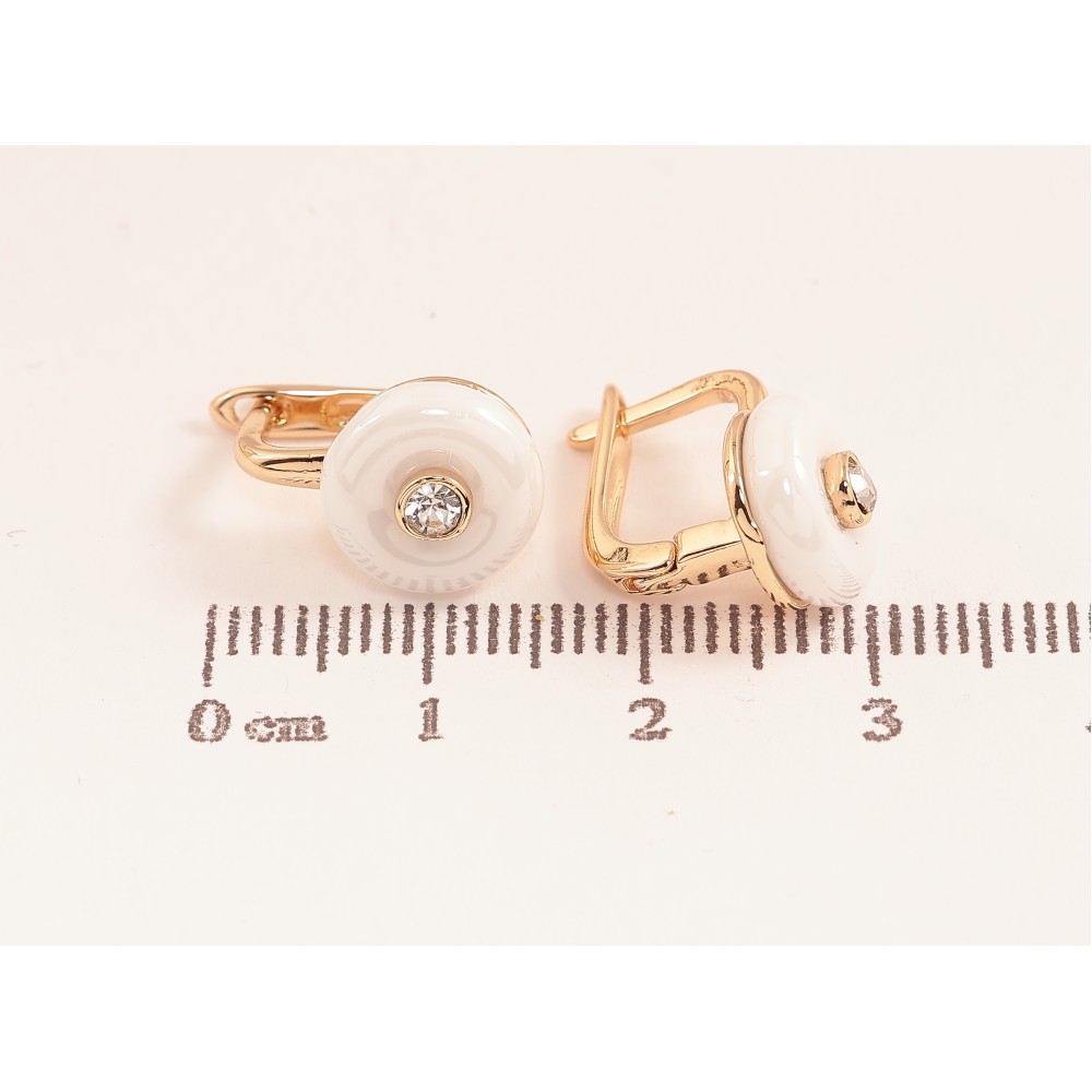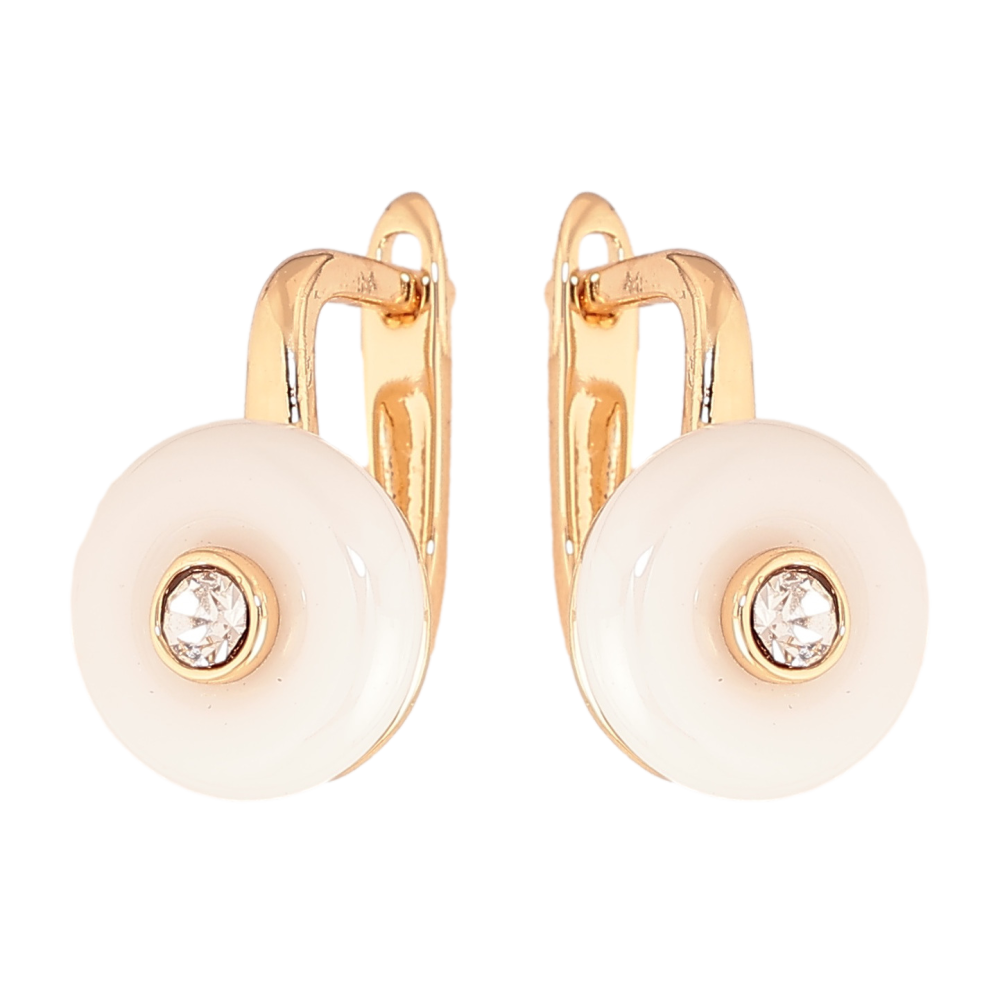 Сережки Xuping TTM Stainless Steel колір 18К англійський замок кола з білої кераміки з кристалами