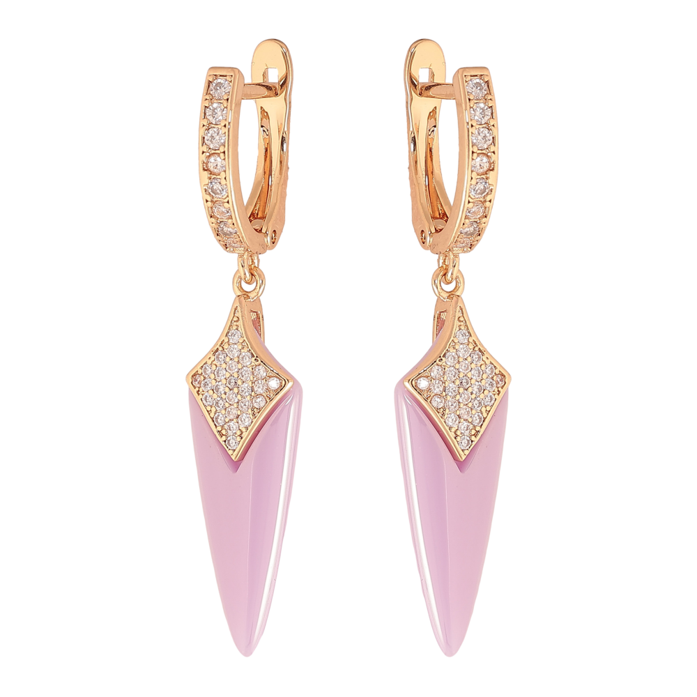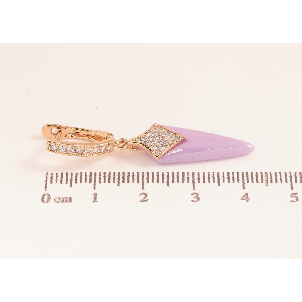 Сережки Xuping TTM Stainless Steel колір 18К англійський замок підвіски з бузковою керамікою та кристалами