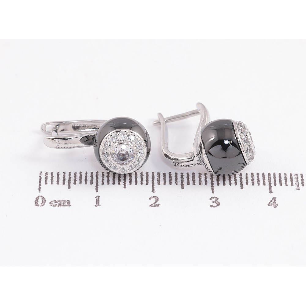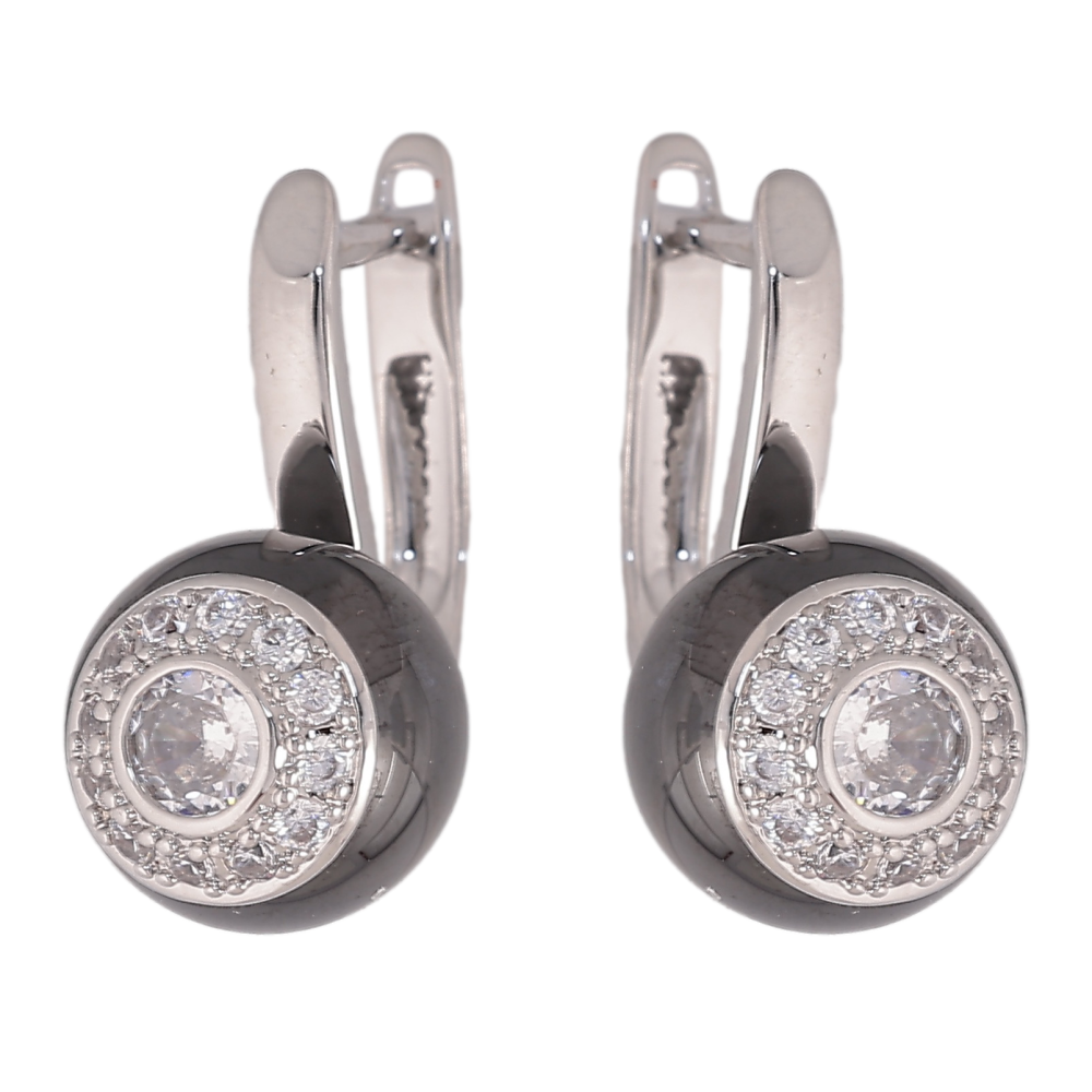 Сережки Xuping TTM Stainless Steel колір Родій англійський замок "Кульки з чорної кераміки з кристалами"
