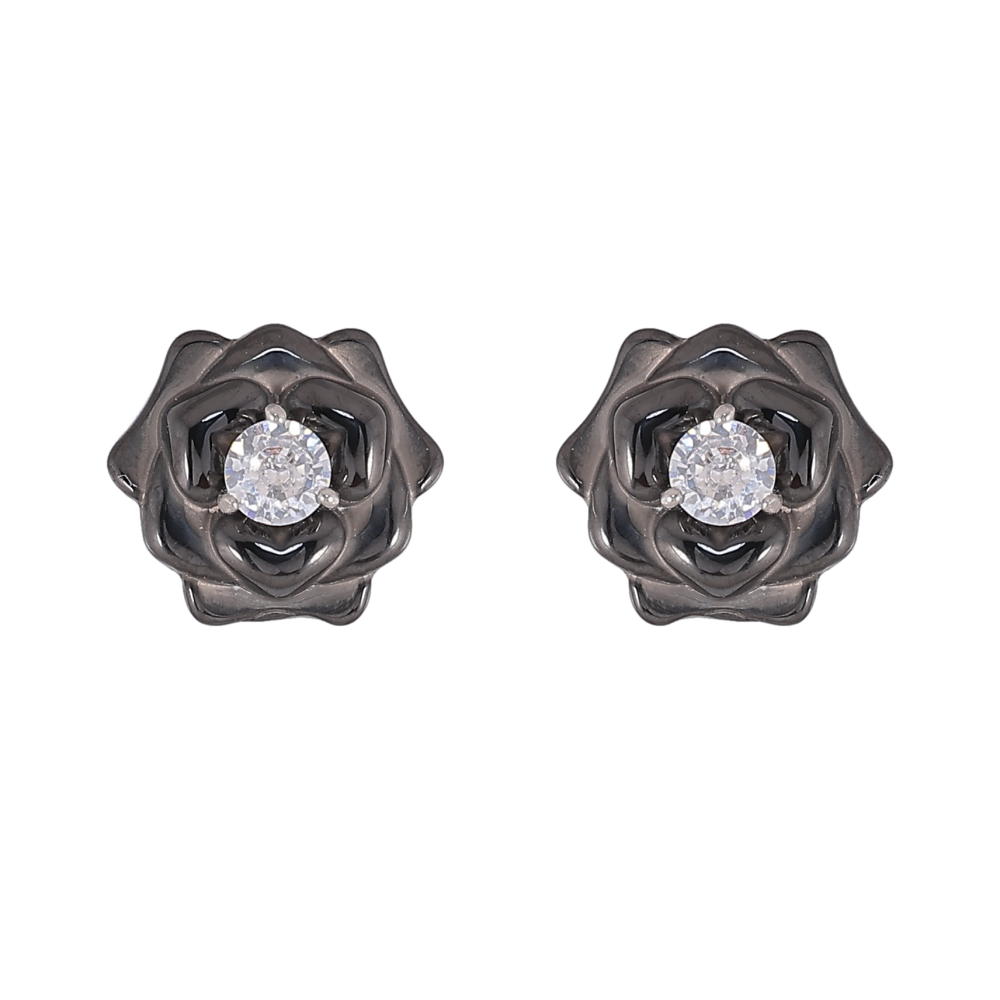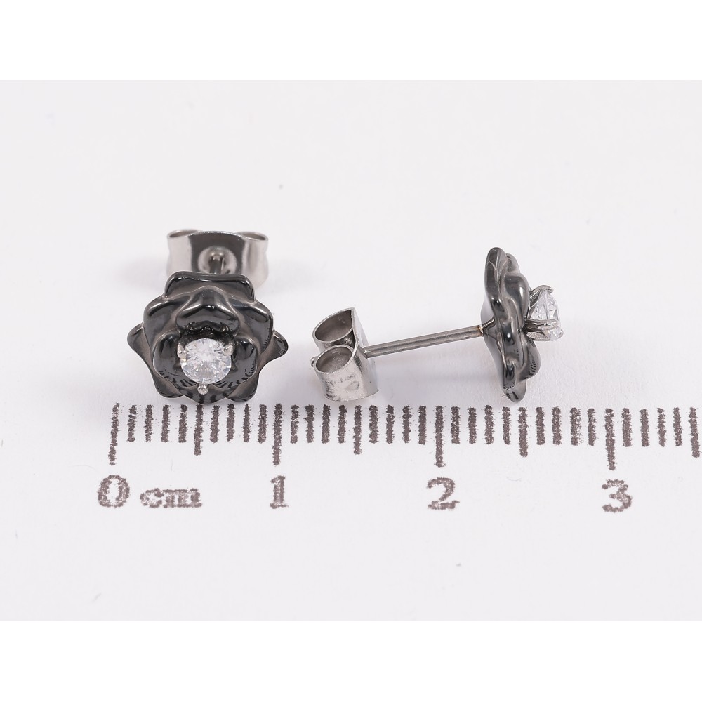 Сережки Xuping TTM Stainless Steel колір Родій пусети "Чорні керамічні квіточки з кристалами"