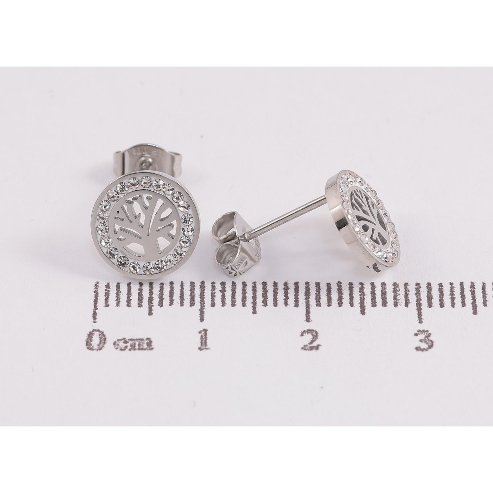 Сережки Xuping TTM Stainless Steel колір Родій пусети "Древо життя" ø 10мм