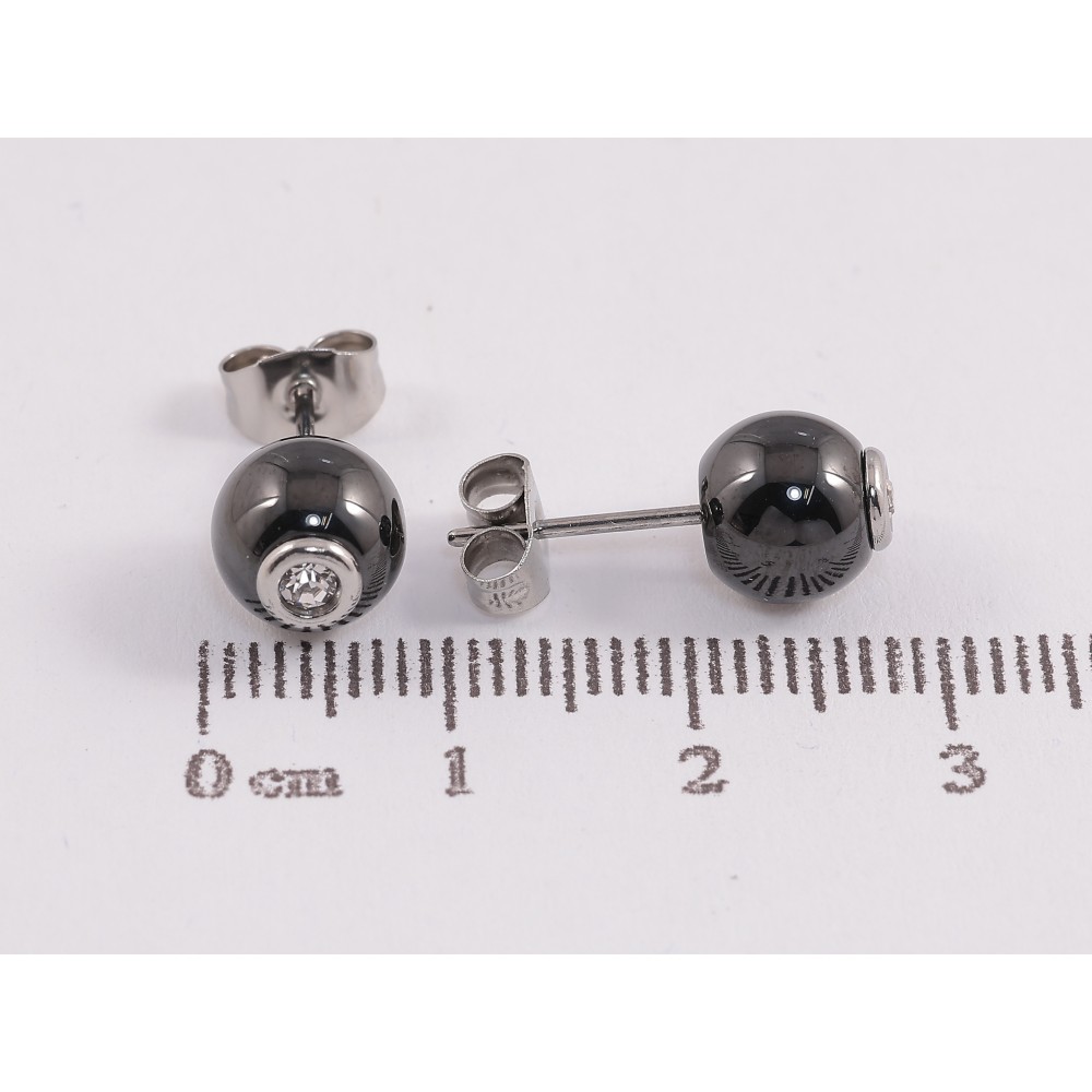 Сережки Xuping TTM Stainless Steel колір Родій пусети "Кульки з чорної кераміки" ø 8мм