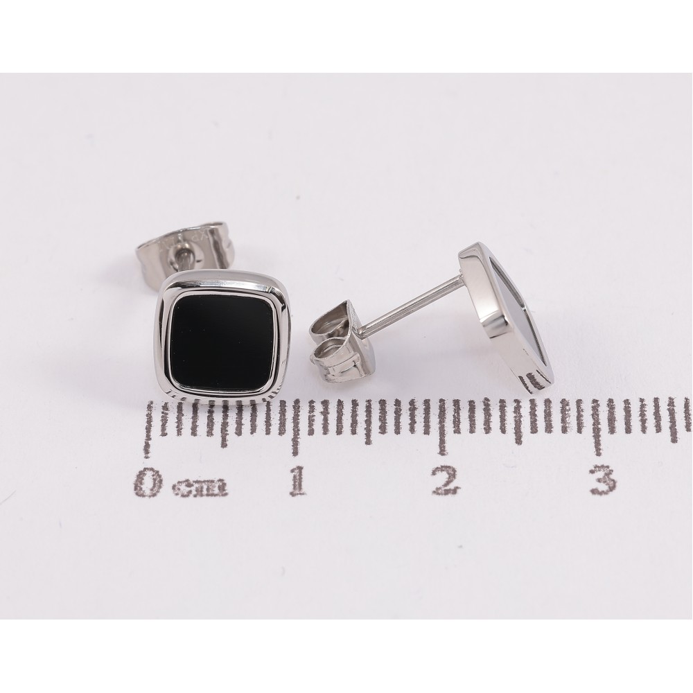 Сережки Xuping TTM Stainless Steel колір Родій пусети "Ромби з чорними вставками" 9х9мм