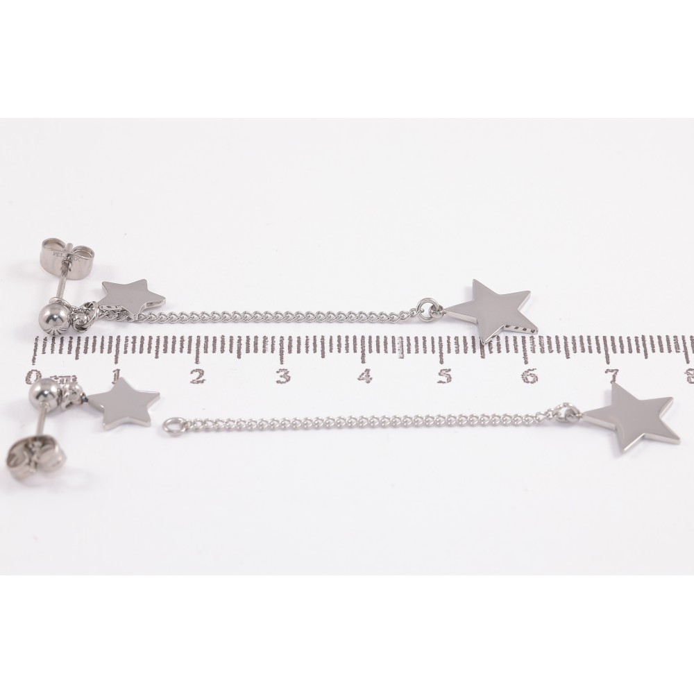 Сережки Xuping TTM Stainless Steel колір Родій пусети "Зірки" 2 в 1