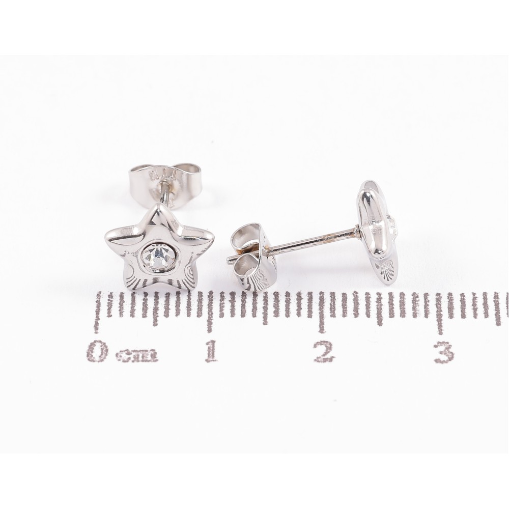 Сережки Xuping TTM Stainless Steel колір Родій пусети "Зірки з кристалами"